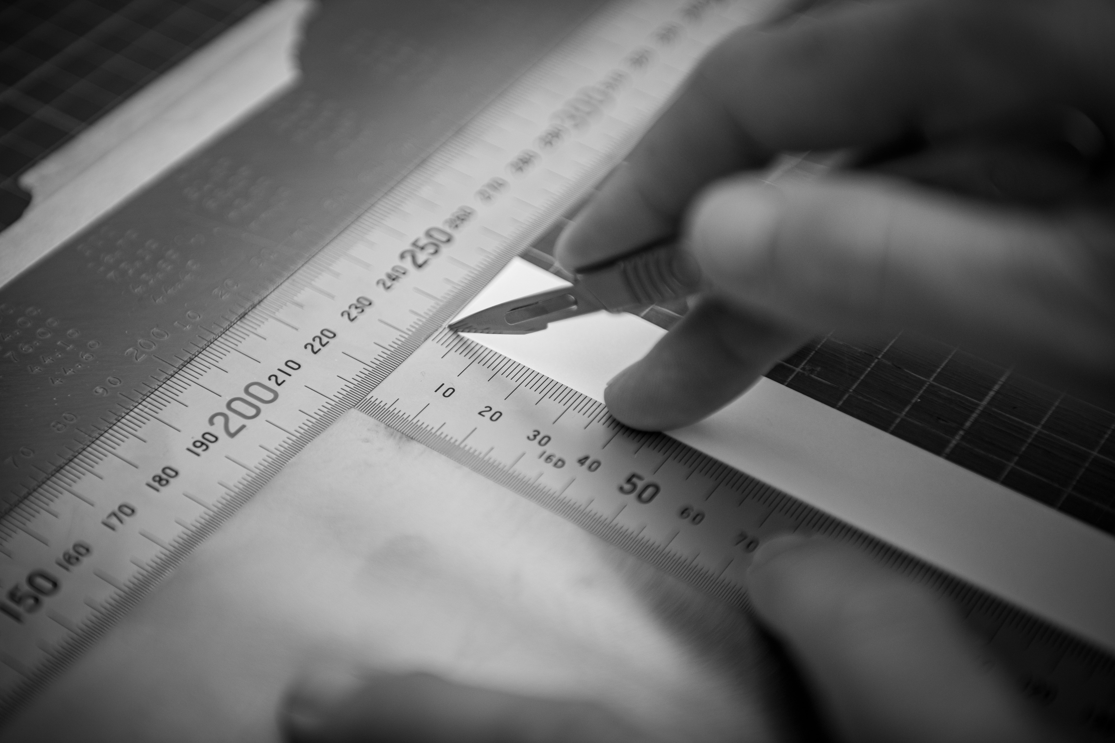 Een techniek waarbij je snel perfect kunt meten, vouwen en snijden zonder potloodaanduidingen. Met deze snij- en vouwmethode sla je de fase van het potlood over, je meet en snijdt tegelijk, heel vlug, zo perfect als met menselijke hand mogelijk is. Vlugger, juister, makkelijker!